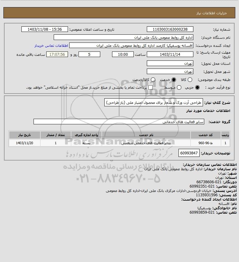 نام دستگاه خریدار:اداره کل روابط عمومی بانک ملی ایران
