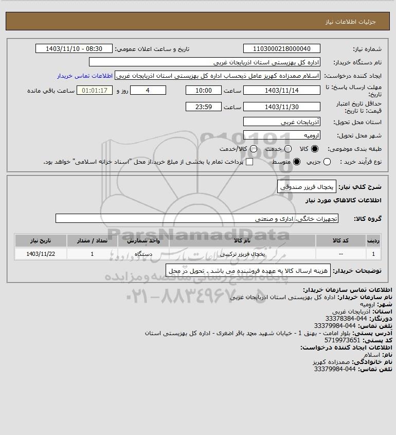 شرح کلی نیاز: یخچال فریزر صندوقی