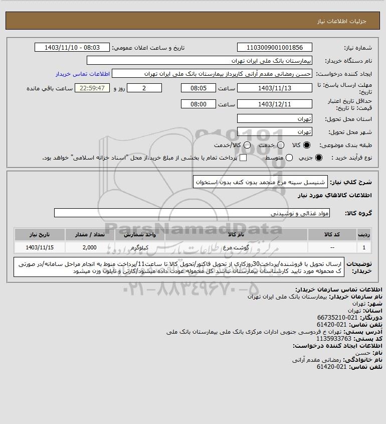 نام سازمان خریدار: بیمارستان بانک ملی ایران تهران