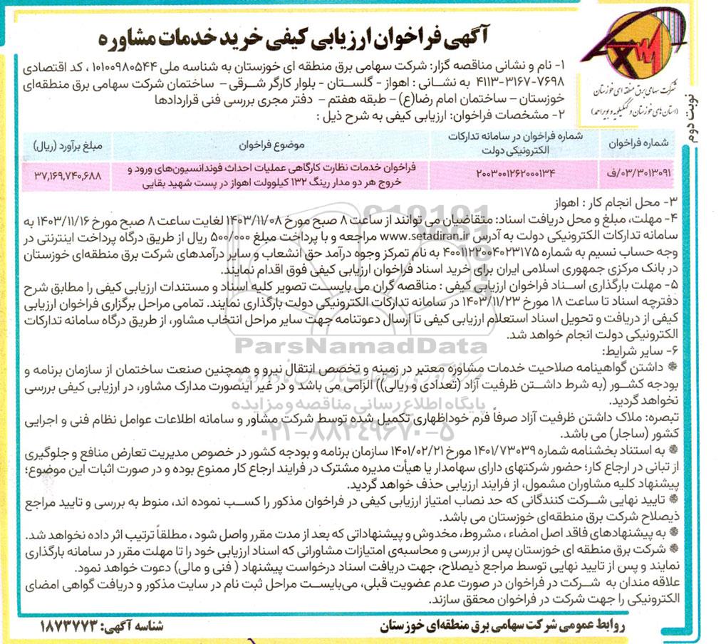 اگهی فراخوان ارزیابی کیفی خرید خدمات مشاوره- نوبت دوم