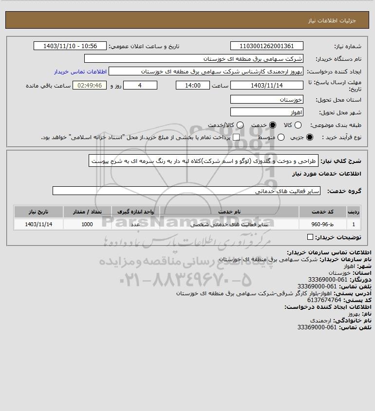 نام دستگاه خریدار:شرکت سهامی برق منطقه ای خوزستان
