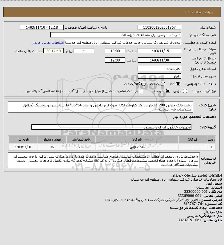 نام دستگاه خریدار:شرکت سهامی برق منطقه ای خوزستان