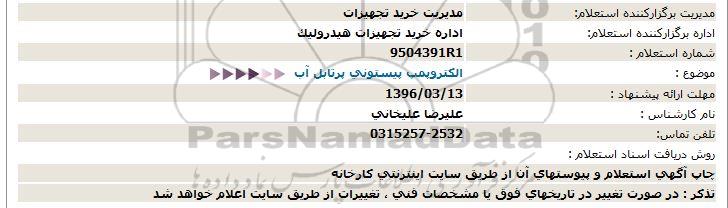 اداره برگزارکننده استعلام: اداره خرید تجهیزات هیدرولیک