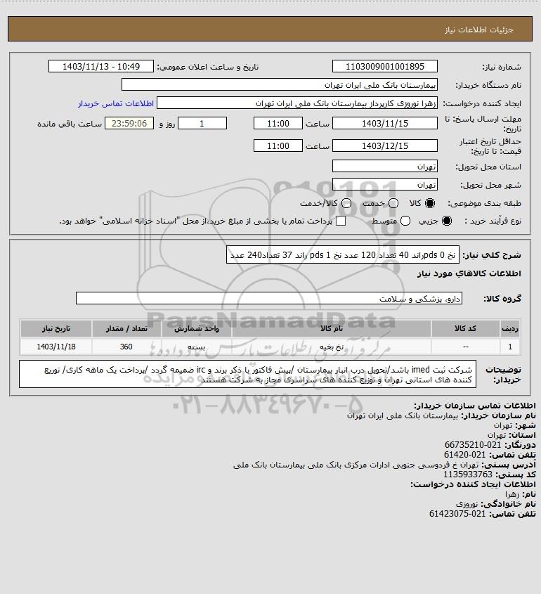 نام دستگاه خریدار:بیمارستان بانک ملی ایران تهران