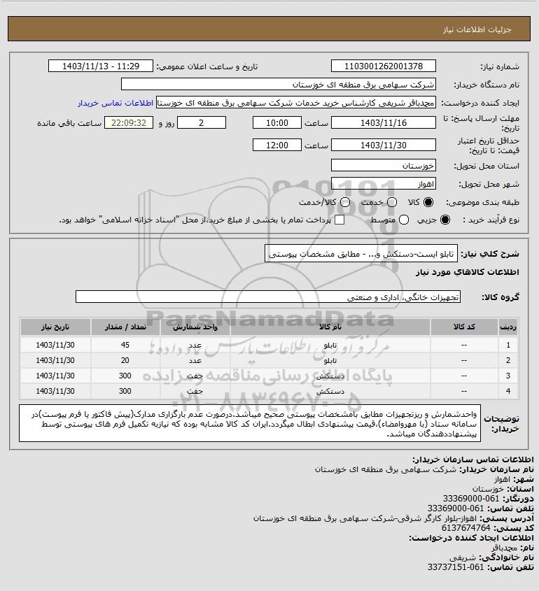 نام دستگاه خریدار:شرکت سهامی برق منطقه ای خوزستان