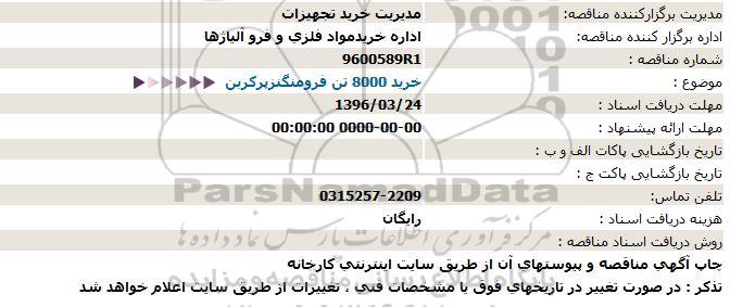 استعلام خرید 8000 تن فرومنگنزپرکربن , استعلام خرید 8000 تن فرومنگنزپرکربن
