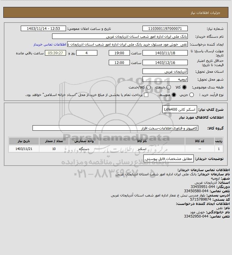 شرح کلی نیاز: اسکنر کانن Lide400