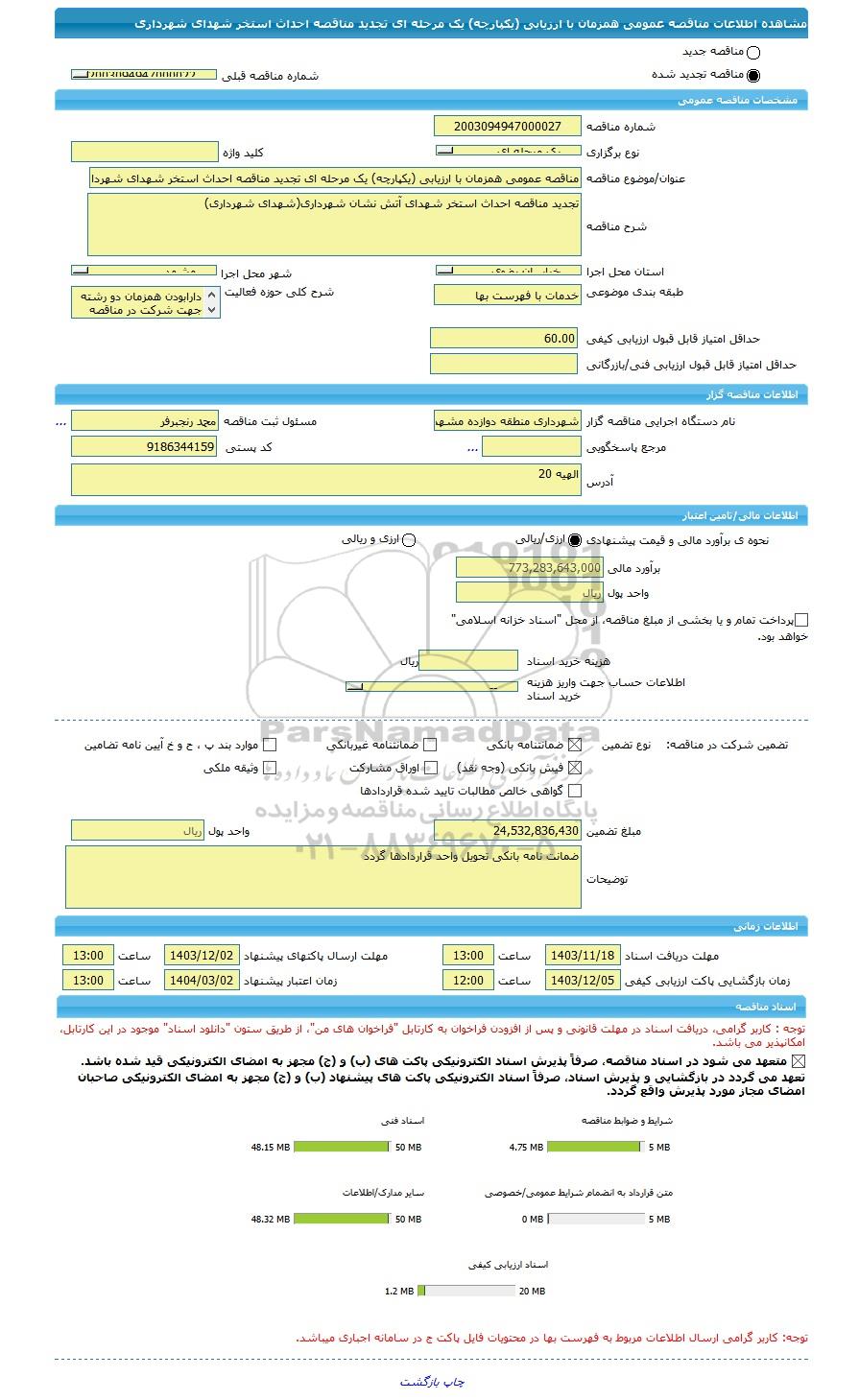 | نام دستگاه اجرایی مناقصه گزار | شهرداری منطقه دوازده مشهد استان خراسان رضوی | مسئول ثبت مناقصه | محمد رنجبرفر |