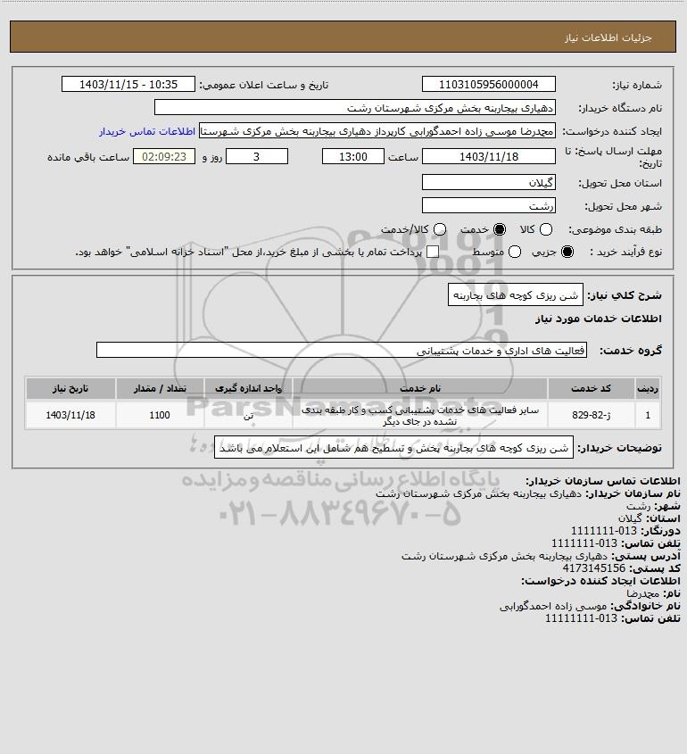 نام دستگاه خریدار:دهیاری بیجاربنه بخش مرکزی شهرستان رشت