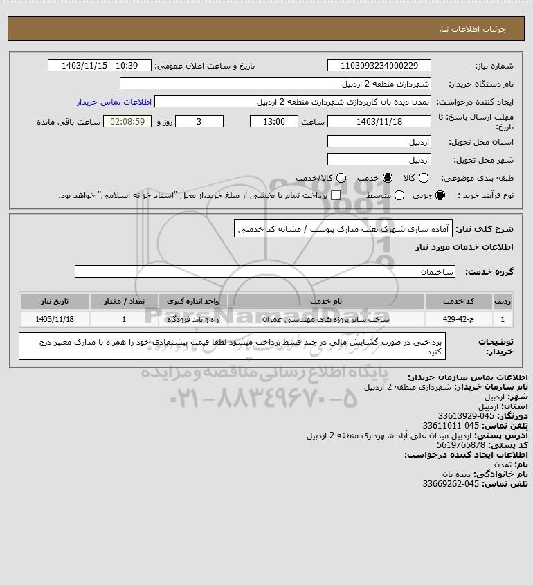 نام دستگاه خریدار:شهرداری منطقه 2 اردبیل
