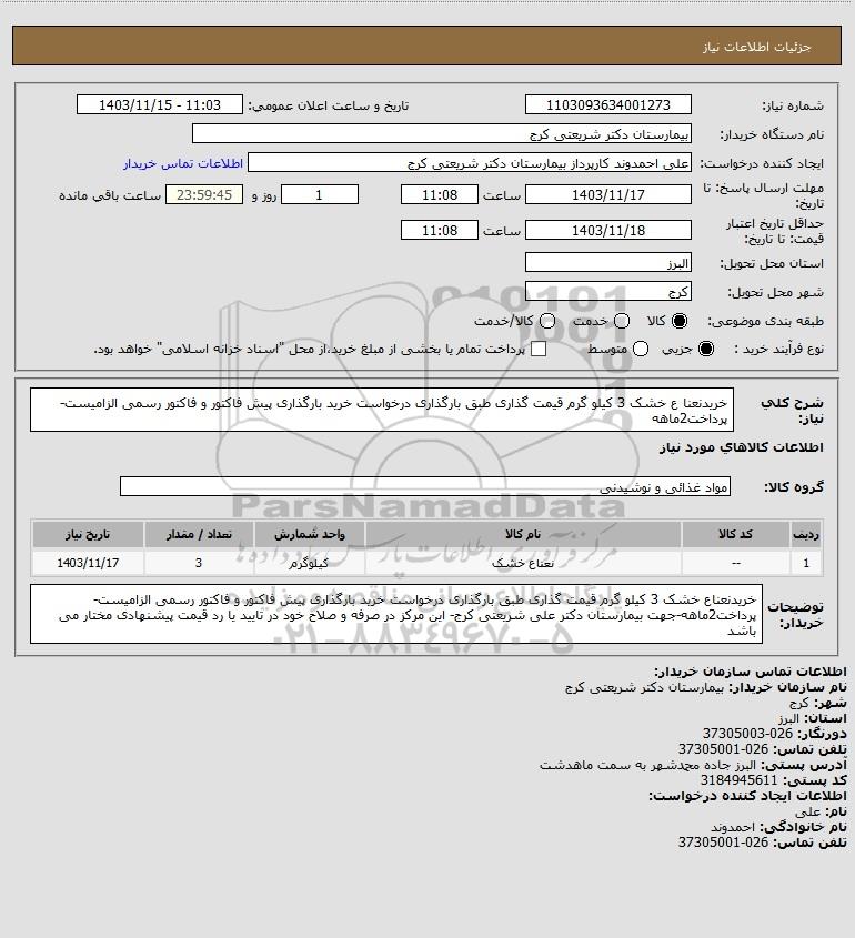 نام دستگاه خریدار:بیمارستان دکتر شریعتی کرج