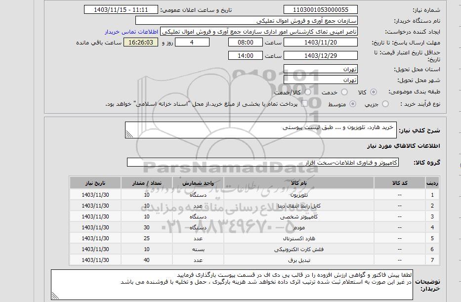 شرح کلی نیاز: خرید هارد، تلویزیون و ... طبق لیست پیوستی