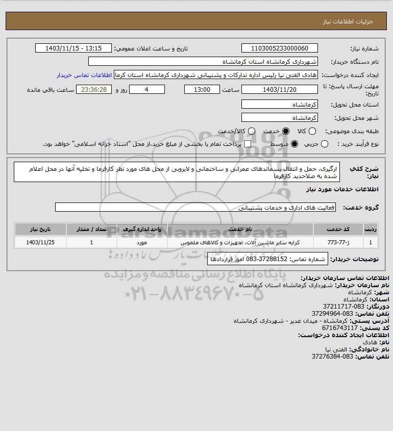 نام دستگاه خریدار:شهرداری کرمانشاه استان کرمانشاه