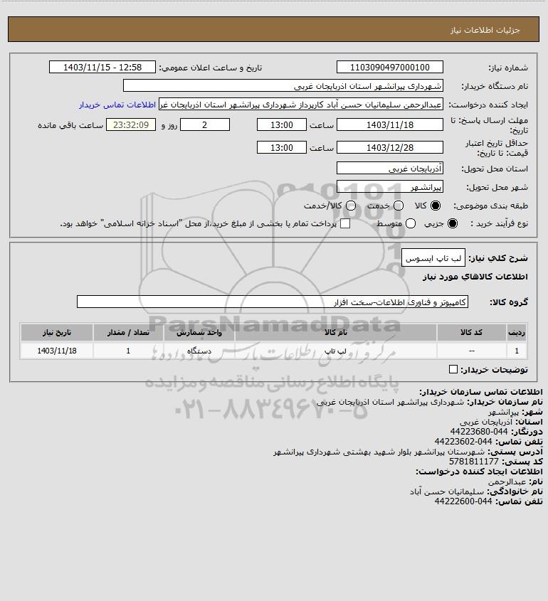 نام دستگاه خریدار:شهرداری پیرانشهر استان اذربایجان غربی