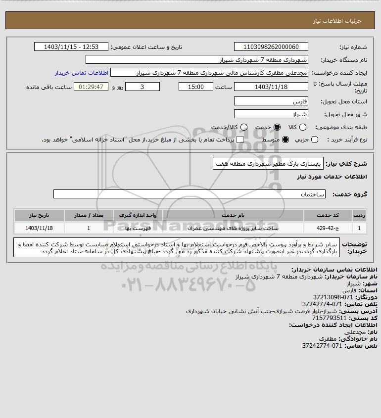 نام دستگاه خریدار:شهرداری منطقه 7 شهرداری شیراز