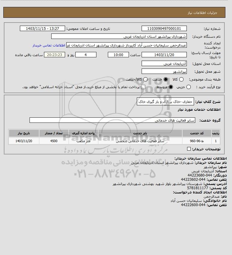 شرح کلی نیاز: حفاری -خاک برداری و بار گیری خاک