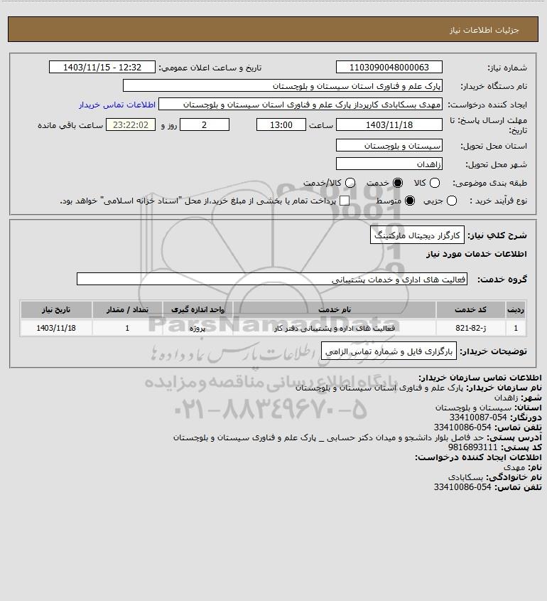 نام دستگاه خریدار:پارک علم و فناوری استان سیستان و بلوچستان