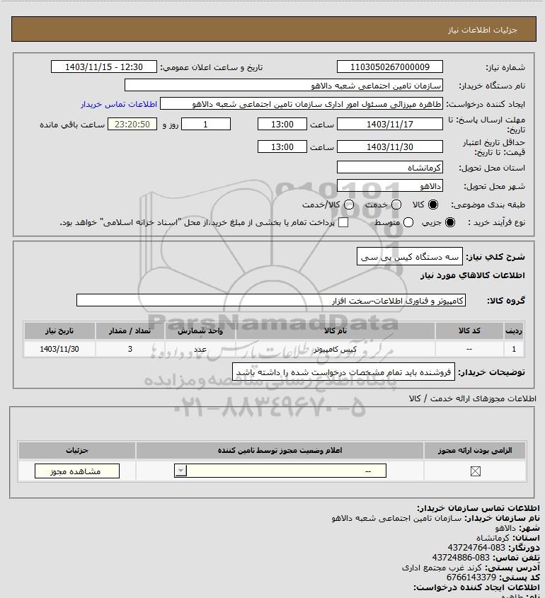 استعلام سه دستگاه کیس پی سی, استعلام سه دستگاه کیس پی سی