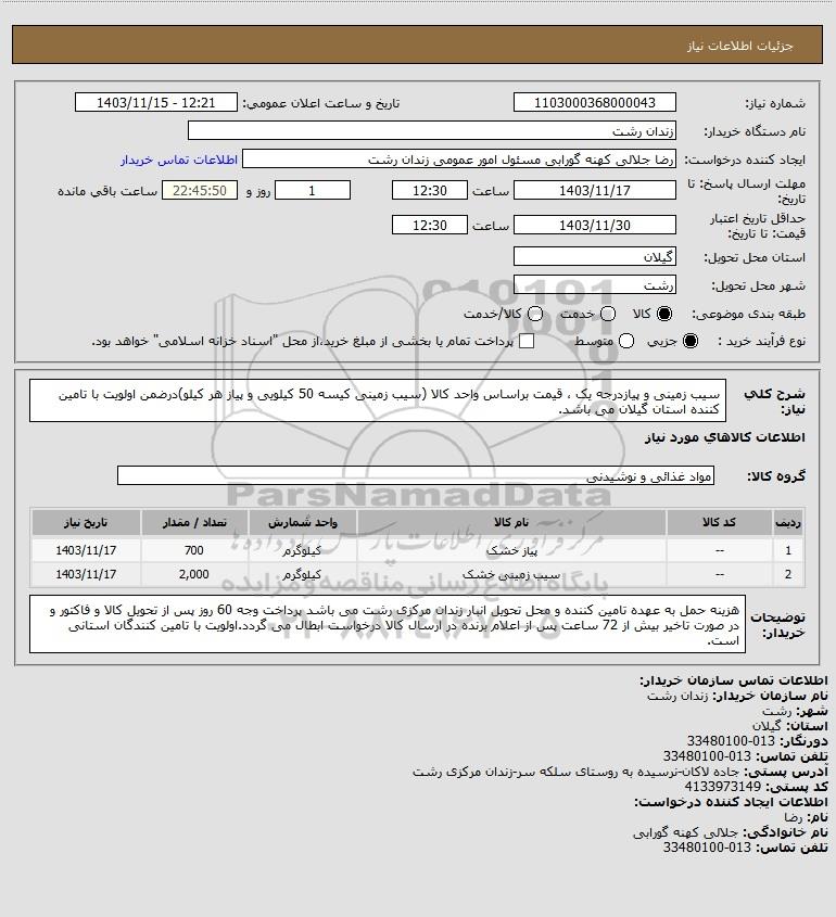 | 1 | -- | پیاز خشک | کیلوگرم | 700 | 1403/11/17 |