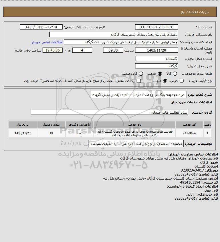 نام دستگاه خریدار:دهیاری بلبل تپه بخش بهاران شهرستان گرگان