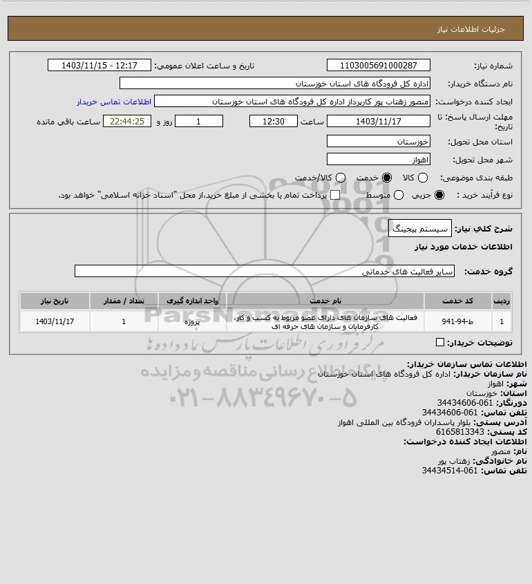 نام دستگاه خریدار:اداره کل فرودگاه های استان خوزستان