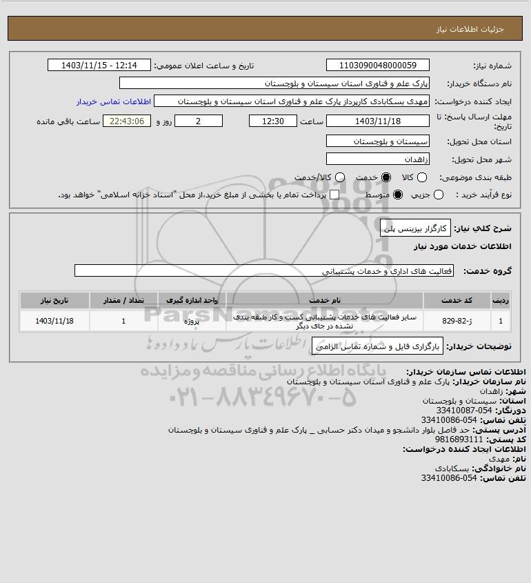 نام دستگاه خریدار:پارک علم و فناوری استان سیستان و بلوچستان