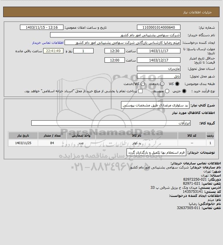 نام دستگاه خریدار:شرکت سهامی پشتیبانی امور دام کشور