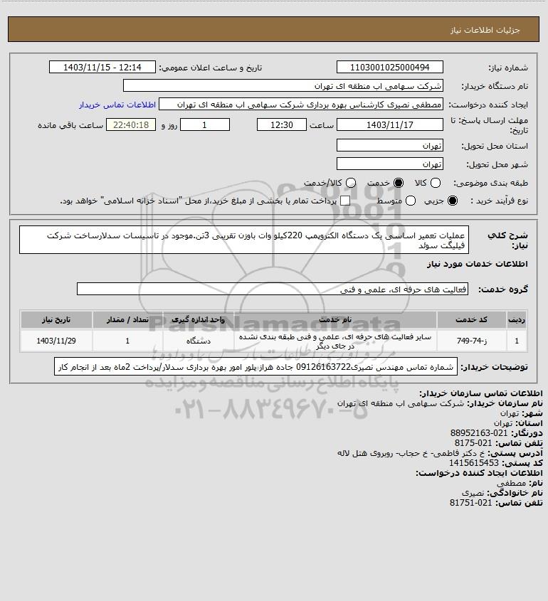 نام دستگاه خریدار:شرکت سهامی اب منطقه ای تهران