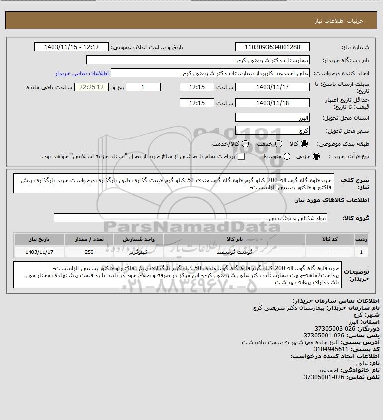 نام دستگاه خریدار:بیمارستان دکتر شریعتی کرج