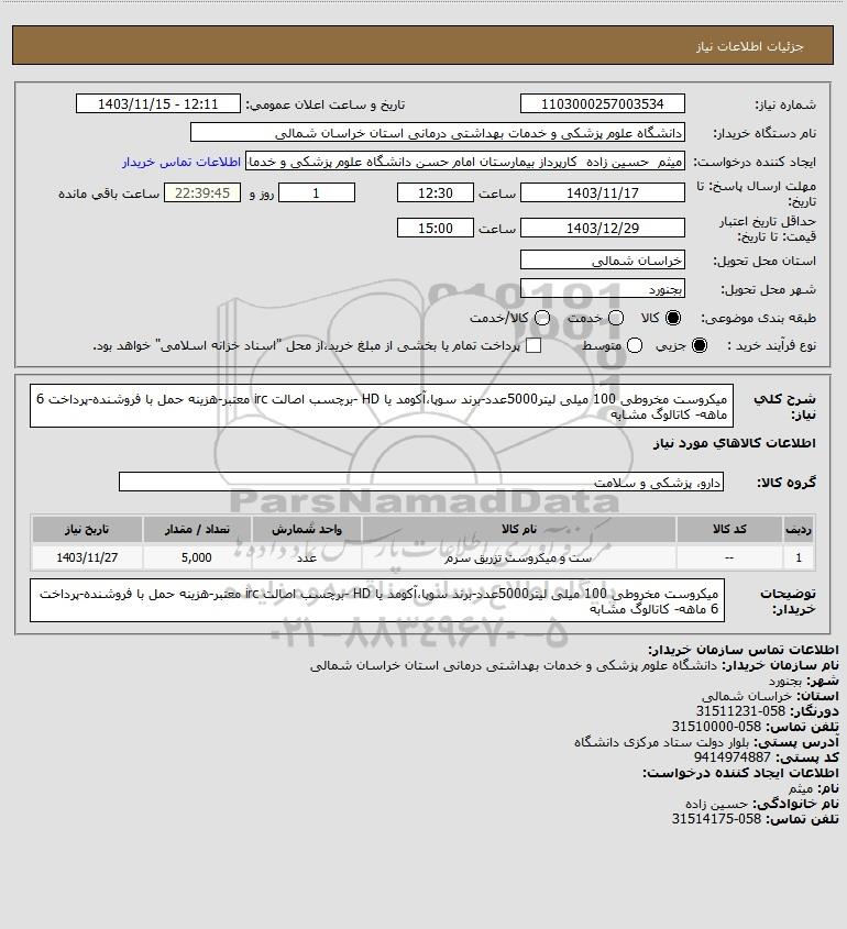 نام دستگاه خریدار:دانشگاه علوم پزشکی و خدمات بهداشتی درمانی استان خراسان شمالی