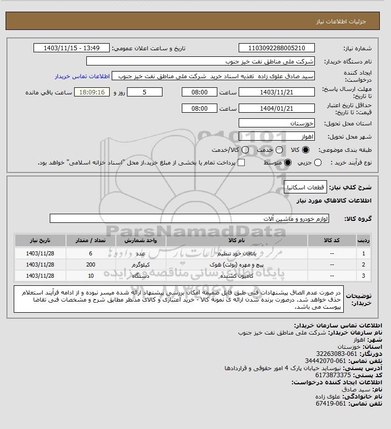 نام دستگاه خریدار:شرکت ملی مناطق نفت خیز جنوب