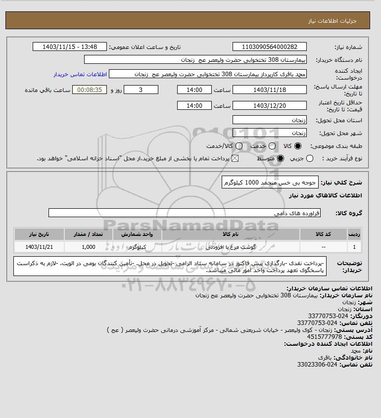 شرح کلی نیاز: جوجه بی خس منجمد 1000 کیلوگرم