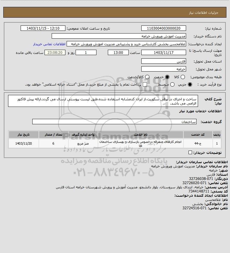نام دستگاه خریدار:مدیریت اموزش وپرورش خرامه