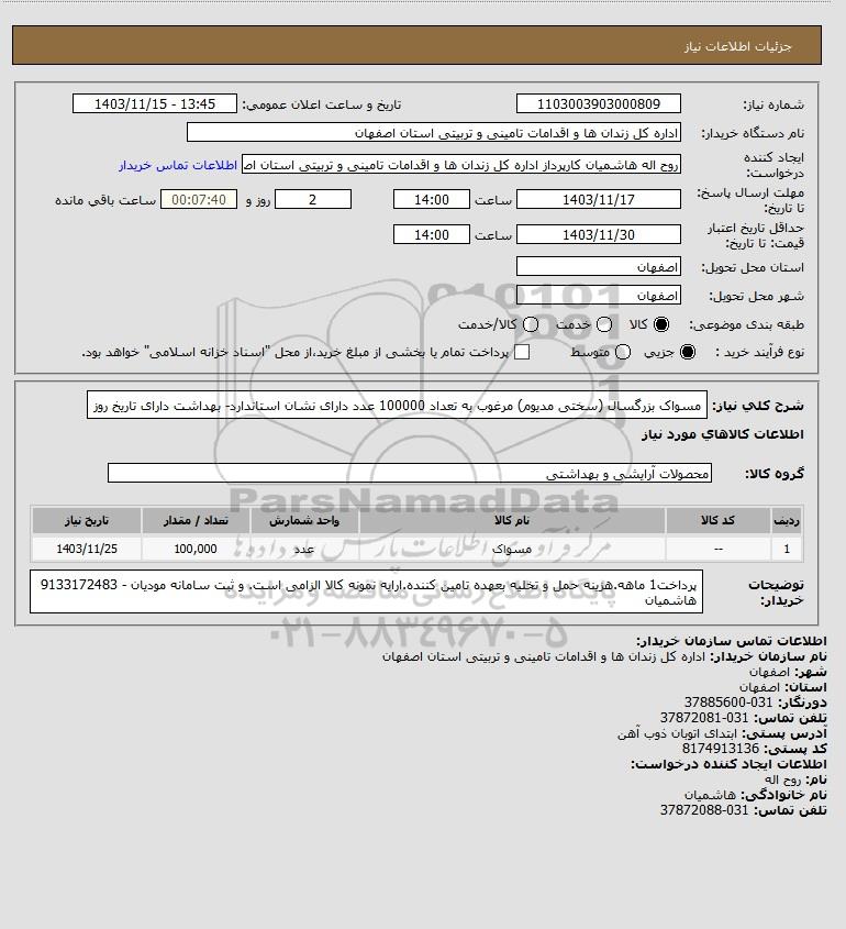 | 1 | -- | مسواک | عدد | 100,000 | 1403/11/25 |