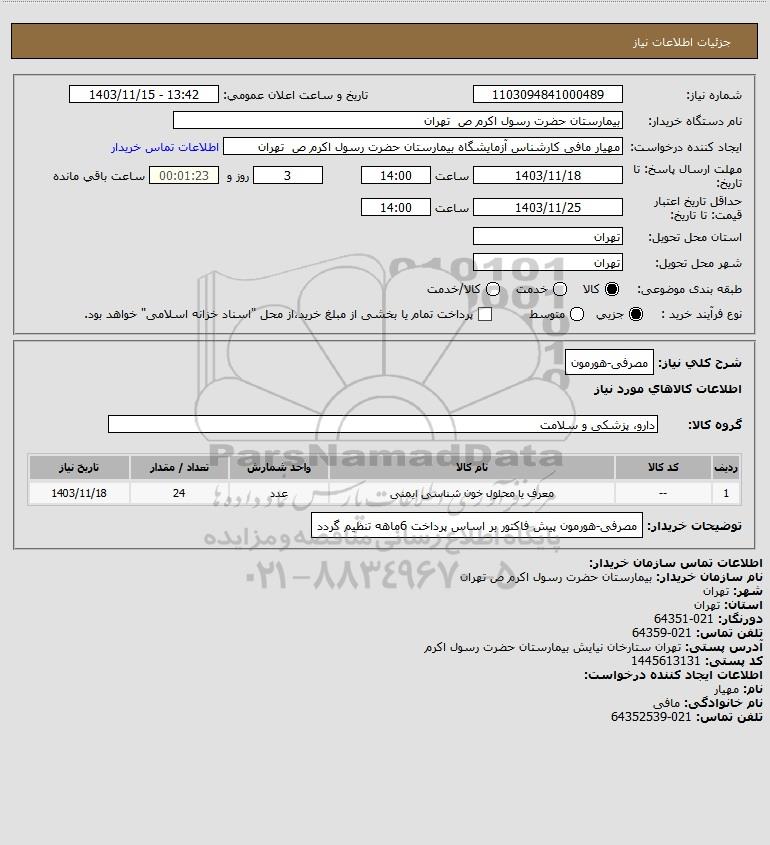 توضیحات خریدار:مصرفی-هورمون پیش فاکتور بر اساس پرداخت 6ماهه تنظیم گردد