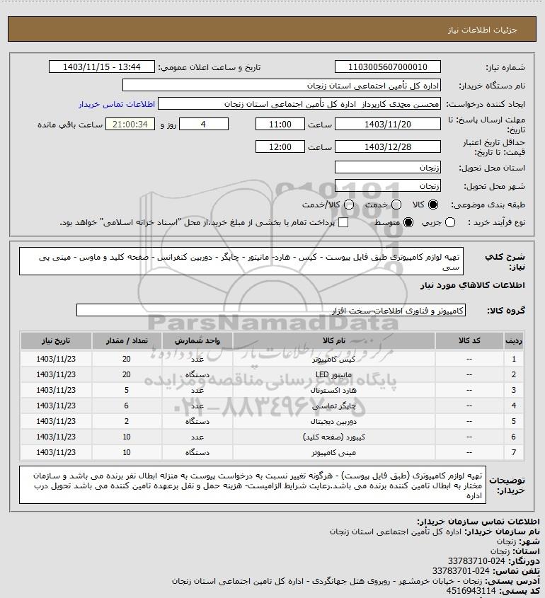 نام دستگاه خریدار:اداره کل تأمین اجتماعی استان زنجان