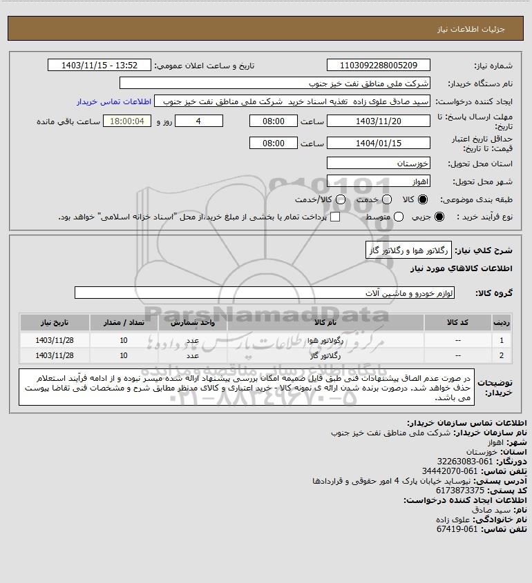 شرح کلی نیاز: رگلاتور هوا و رگلاتور گاز