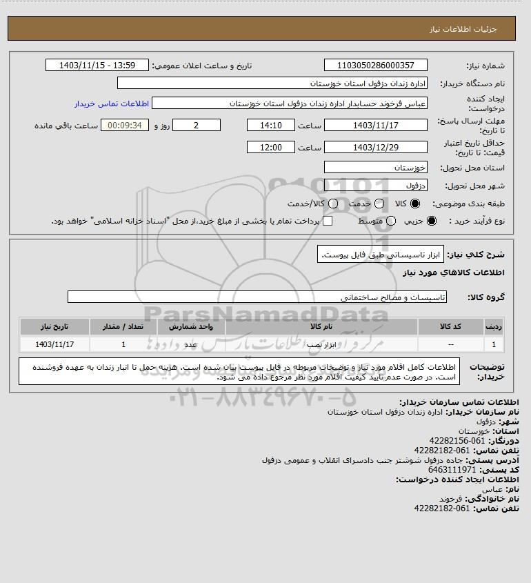 نام دستگاه خریدار:اداره زندان دزفول استان خوزستان