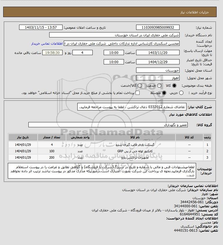 نام دستگاه خریدار:شرکت ملی حفاری ایران در استان خوزستان