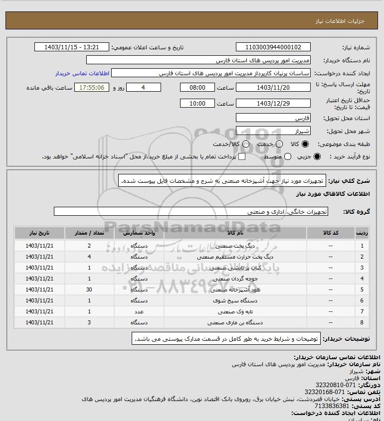 نام دستگاه خریدار:مدیریت امور پردیس های استان فارس
