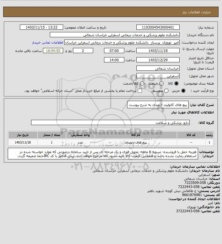 شرح کلی نیاز: پیچ های کانولیتد ارتوپدی به شرح پیوست