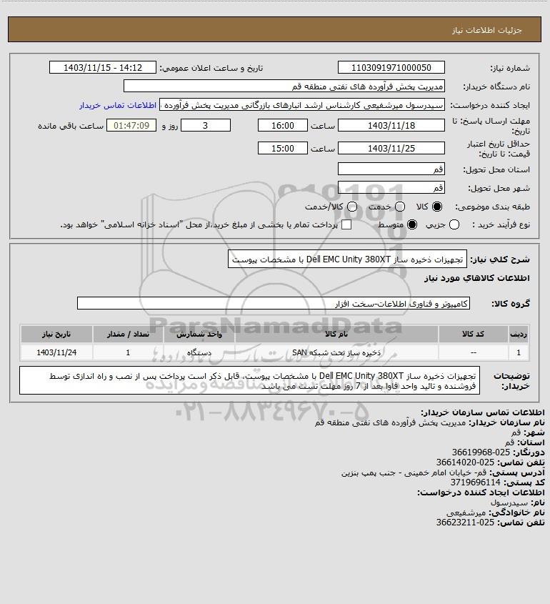 شرح کلی نیاز: تجهیزات ذخیره ساز Dell EMC Unity 380XT با مشخصات پیوست