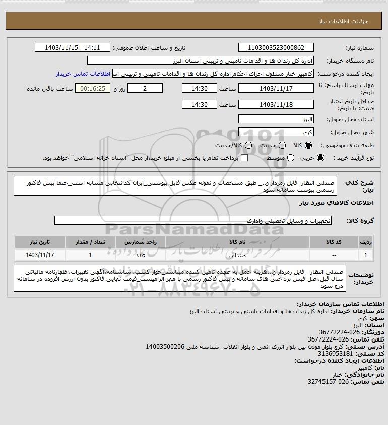 نام دستگاه خریدار:اداره کل زندان ها و اقدامات تامینی و تربیتی استان البرز