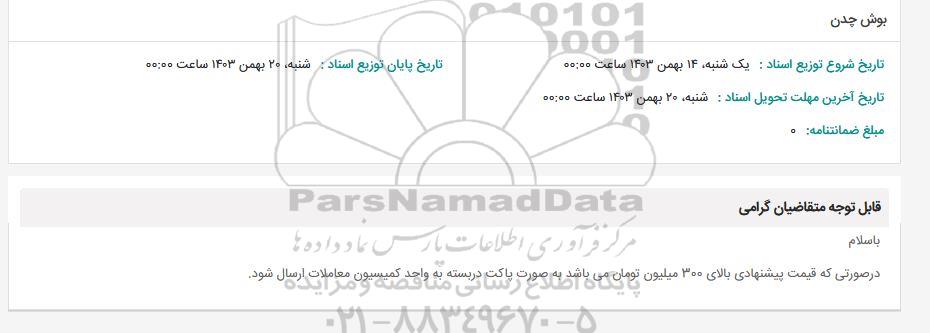 برای شرکت در مناقصه حتما از تصویر آگهی در سایت پارس نماد داده ها استفاده نمایید