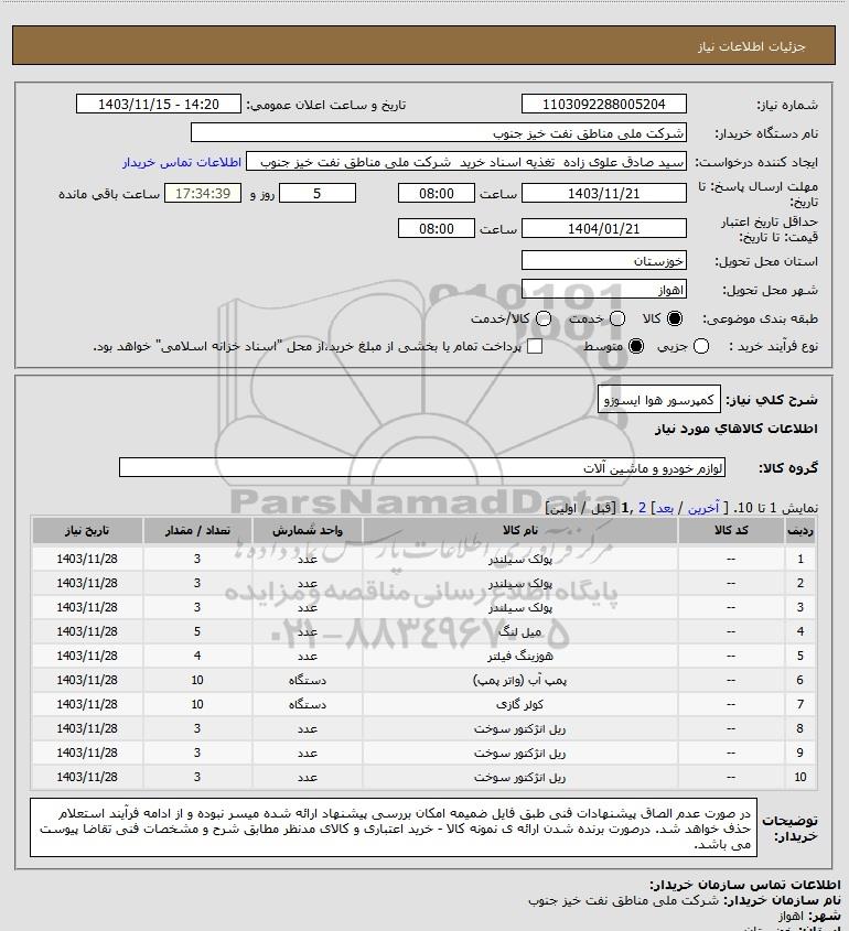 شرح کلی نیاز: کمپرسور هوا ایسوزو