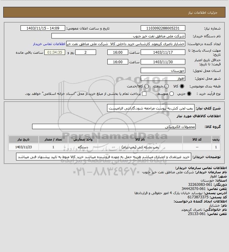 نام دستگاه خریدار:شرکت ملی مناطق نفت خیز جنوب