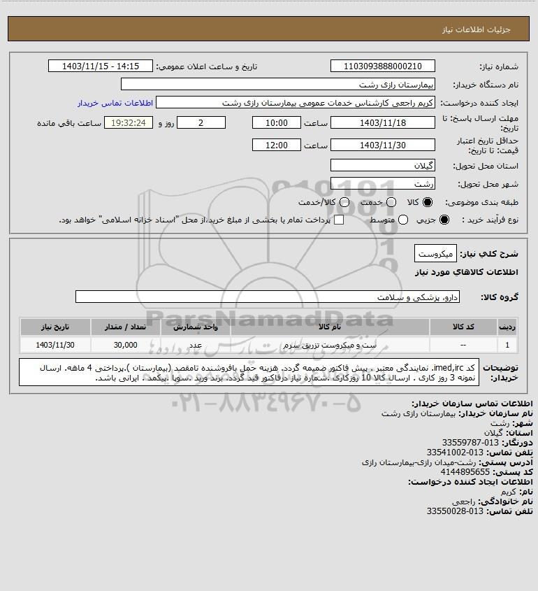 | 1 | -- | ست و میکروست تزریق سرم | عدد | 30,000 | 1403/11/30 |
