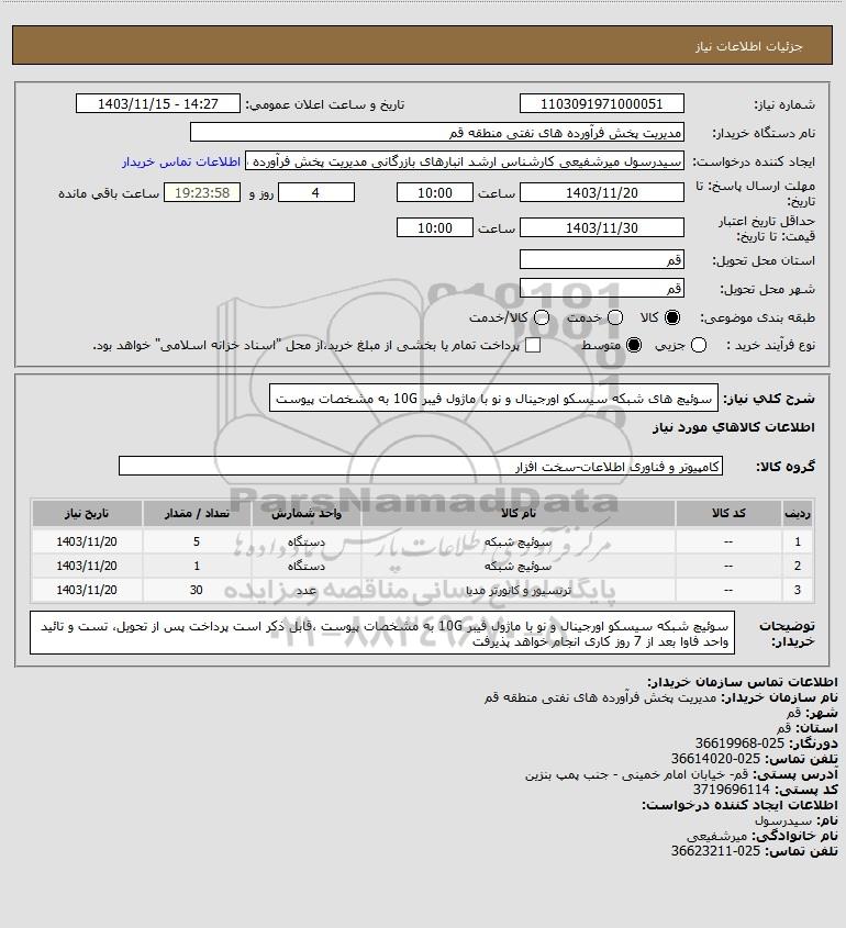 | 3 | -- | ترنسیور و کانورتر مدیا | عدد | 30 | 1403/11/20 |