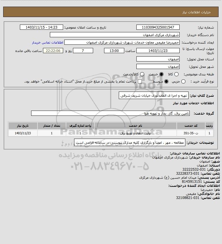 شرح کلی نیاز: تهیه و اجرا ی المان نوری خیابان شریف شرقی