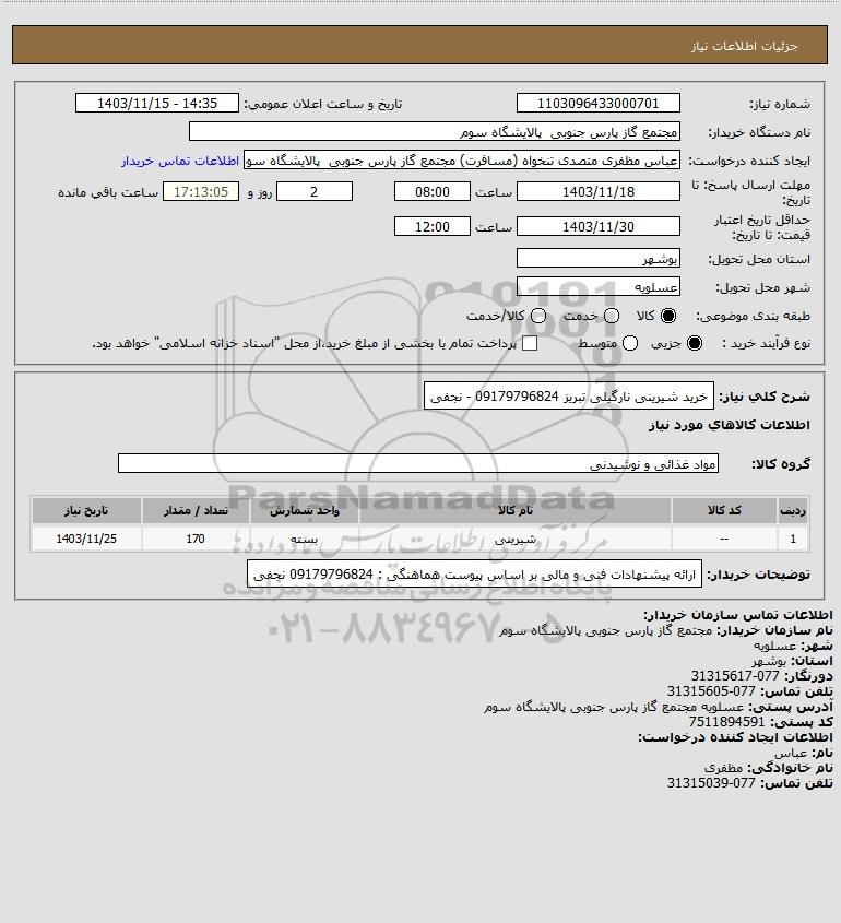 نام دستگاه خریدار:مجتمع گاز پارس جنوبی پالایشگاه سوم